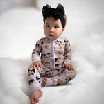 Our Hallowmeow print features an adorable crew of costumed kittens—decked out in pumpkin outfits, spooky skeletons, and candy-ready witch hats. Set on a dreamy lavender background, this limited-edition design is both festive and irresistibly soft, made from our signature cloud-soft bamboo fabric that’s breathable, stretchy, and gentle on sensitive skin.